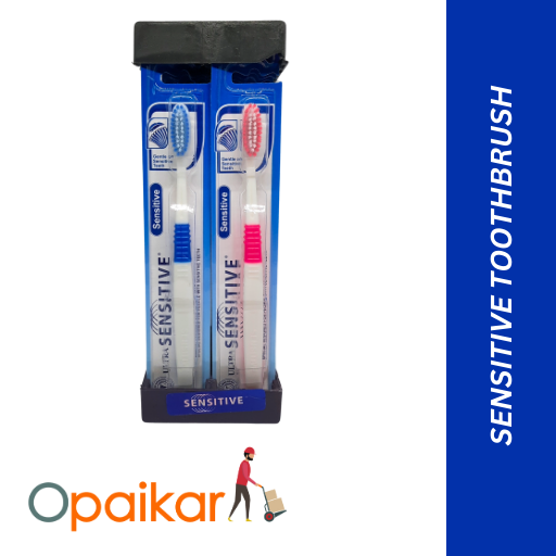 Sensitive Toothbrush has been specially designed for people with sensitive teeth. With 2.5x better pressure control,** this toothbrush cleans better* with less pressure. It also has a DuoFlex neck which helps provide gentle and effective cleaning in hard to clean areas.   Packaging: